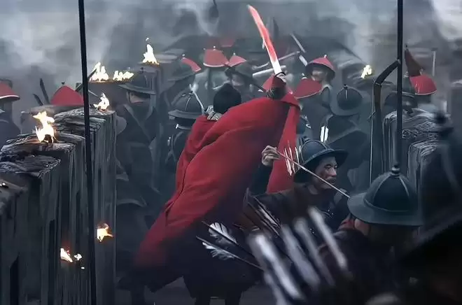 面部轮廓依然硬朗,体态保持得如弓满弦直,脊背不塌、腰身不松,气质拿捏跟“朱瞻基”上身似的,将一个将军的悍勇、无畏、狠辣、血性、胆气都呈现出来。