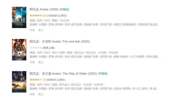 《阿凡达水世界》就差了一个档次,虽然豆瓣和IMDb评分也不低,但整个评分一直维持下滑状态。
