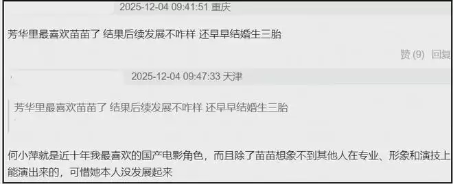 还有网友为苗苗惋惜,翻出她在电影《芳华》中的独舞片段,感慨当初看电影最喜欢的就是苗苗,结果她早早就嫁人了,还三年生三胎,几乎是放弃了娱乐圈事业。