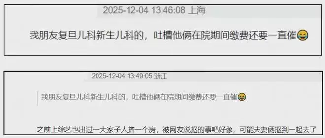 这时候还有网友出来爆料,表示自己的朋友在复旦儿科新生儿科,吐槽过郑恺和苗苗夫妻,声称他们在院期间缴费还要一直催。