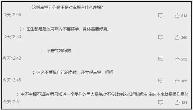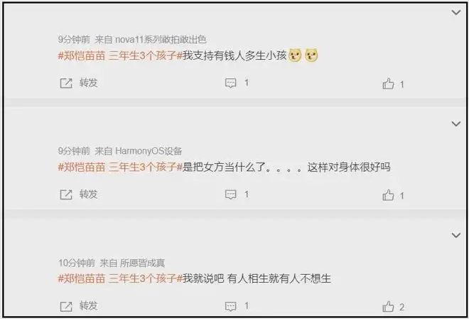 ——有人觉得就算是明星也无法避免生育损伤,苗苗三年抱三,二胎生了三个月就怀上了三胎,他们自己都自觉理亏不愿公布,外人确实没资格管明星生几胎,但吐槽一下总可以吧?