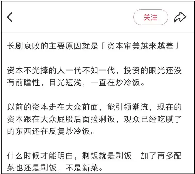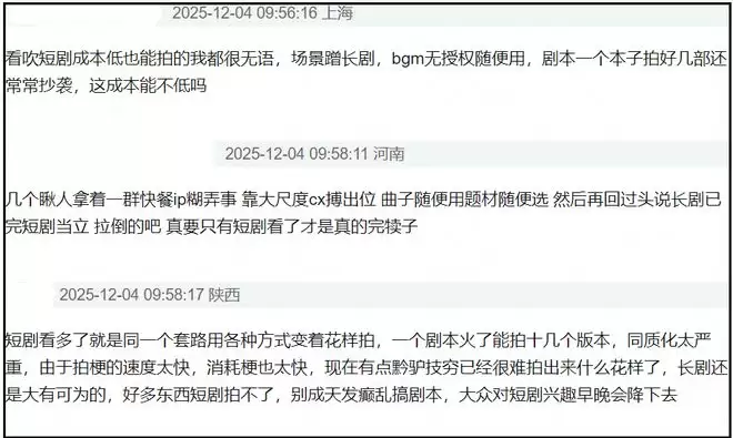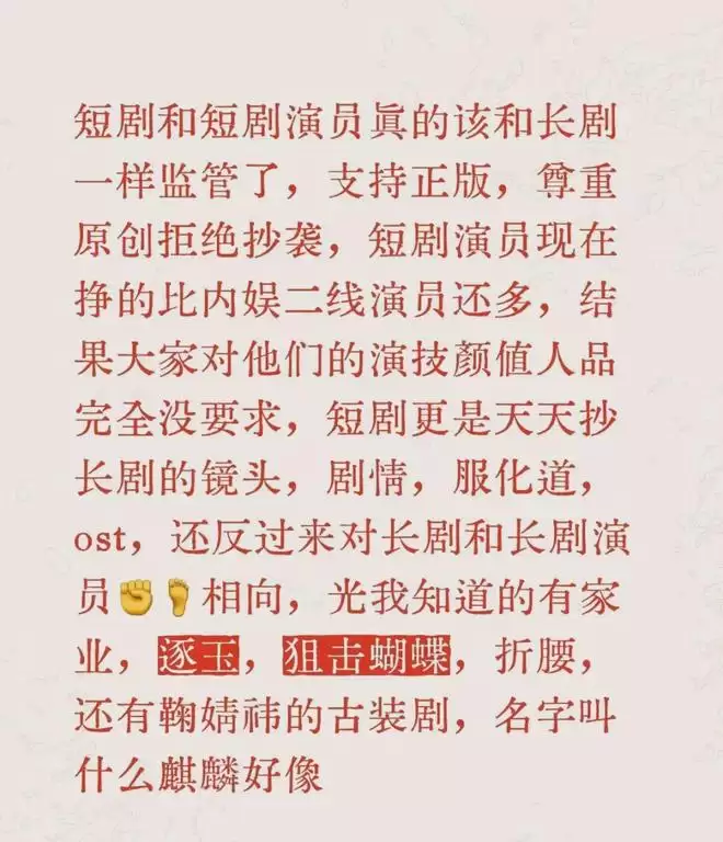 另外,正如网友所说,短剧如果想要更进一步发展,整个行业都应该规范化,野蛮生长不代表放纵,都说短剧早晚超越长剧,可是如果短剧一味靠着抄袭、擦边制造话题,粗制滥造不求进步,是没办法走长远的。