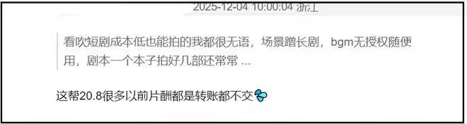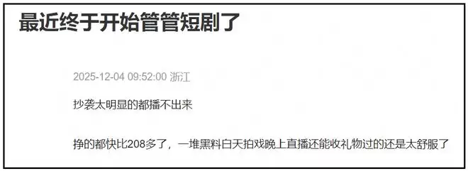 在网友看来,早该管一管短剧了,短剧圈有争议的可不止抄袭,相比较内娱明星,短剧演员基本上不用面对大众监督,他们随意开直播要打赏,只要黑料不出圈,就可以舒舒服服轻松赚钱,都有网友建议好好查一查短剧圈的税。