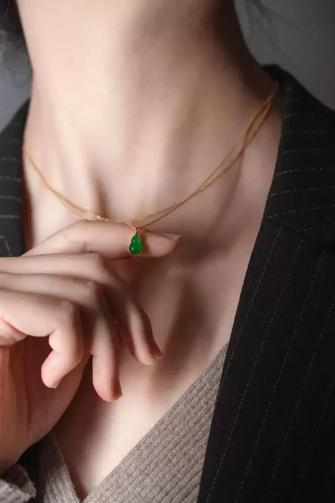“绿葫芦醒目得不容忽视,底色干净无杂质,像幽深碧绿的潭水。何时何地,都能做你的点睛之笔。”