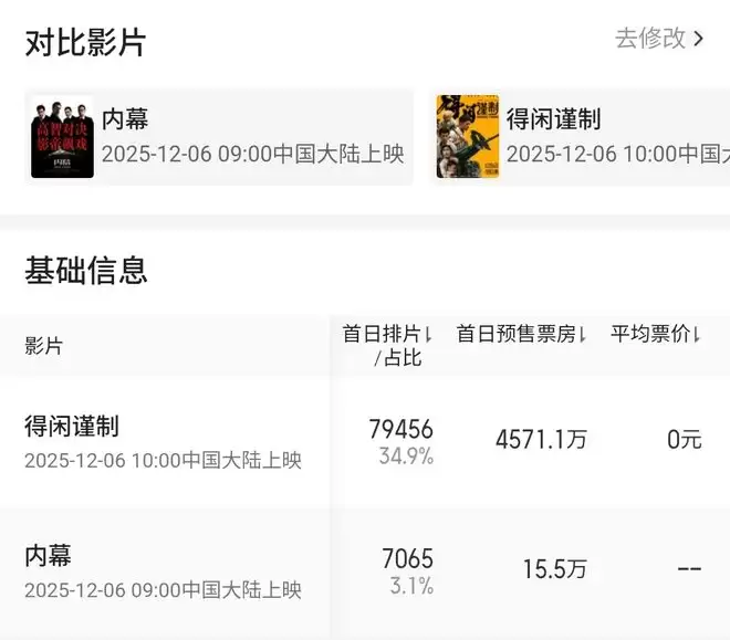 可惜的是目前看《内幕》的宣传,太过传统老套,预售票房也不理想才15.5万,而同一日上映的肖战的《得闲谨制》预售票房高达4571.1万,可以说两部影片不在一个量级。