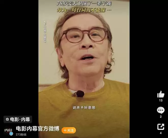 他们演技能量以及演员素养,都比内地的一些流量要好的多,我记得看花絮时,78高龄的姜大卫,因为一场下楼梯的戏没有发挥好,台词有些磕碰,下场后他非常自责,觉得自己耽搁了整个电影,对不起合作的演员。