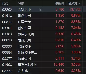 内房股延续升势,万科企业涨幅超过13%。万科在12月10日的会议上告知其债券持有人,如果他们对原定于12月15日到期、规模为20亿元人民币(约合2.829亿美元)的在岸债券的展期提议投出反对票,公司将启用债券募集说明书中提及的5天宽限期。据了解,万科此前曾向部分投资者表示,希望将宽限期延长至30天,并可能在延长期内支付“部分利息”。