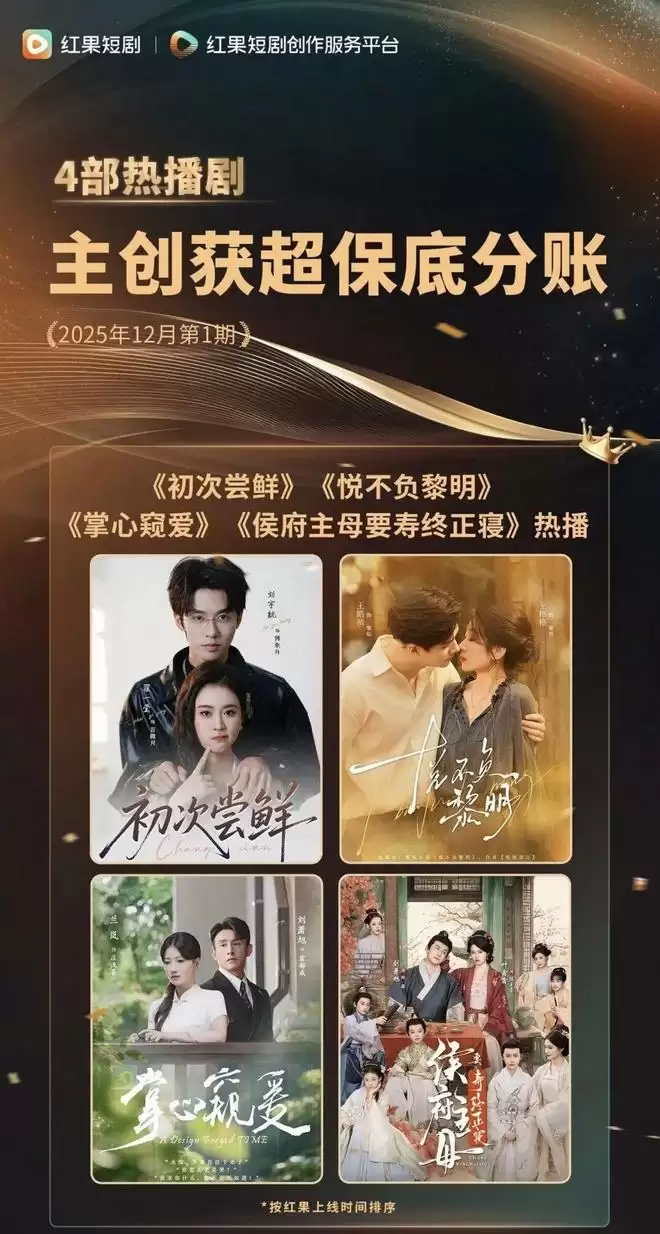 随后在11月20日,红果短剧首次对外公布了演员分账预估数据,王凯沐、徐轸轸、至春禾三位演员凭借单剧斩获超100万的预估分账额。这一突破性消息一经发布,便瞬间点燃了整个行业,不仅彰显了红果短剧加码创作者赋能模式的决心与诚心,更给深耕品质的短剧从业者注入了强劲的创作信心。