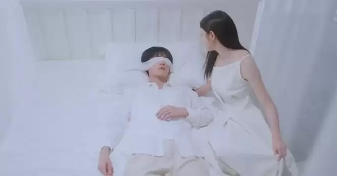 在一片白纱之下,姐姐朝着床上的他走来,十分性感。