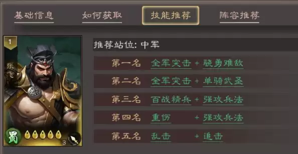 《三国乱世霸王》张飞技能搭配推荐: