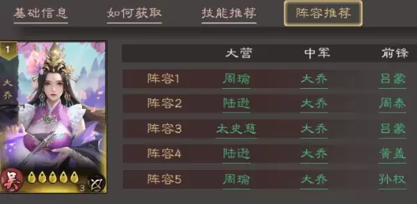 搭配亮点:太史慈主打兵刃爆发,大乔的增伤效果(可覆盖兵刃/谋略伤害)配合吕蒙的控制,能兼顾物理与谋略两种伤害类型。