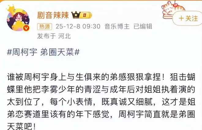 12月8日,“周柯宇 弟圈天菜”这一话题迅速登上微博热搜榜前列,足见大众对他的认可已形成集体共鸣。