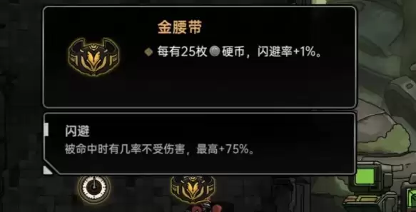 定位生存强化,其效果与硬币收集深度绑定:每拾取25枚硬币,永久提升1%闪避率;成功闪避时,有一定概率实现完全免伤(最高可叠加至75%闪避免伤率)。这件神器特别适合持续收集资源的速通流程或高难位面探索,随着硬币积累,生存能力会稳步提高,在面对高爆发敌人时能有效降低风险。