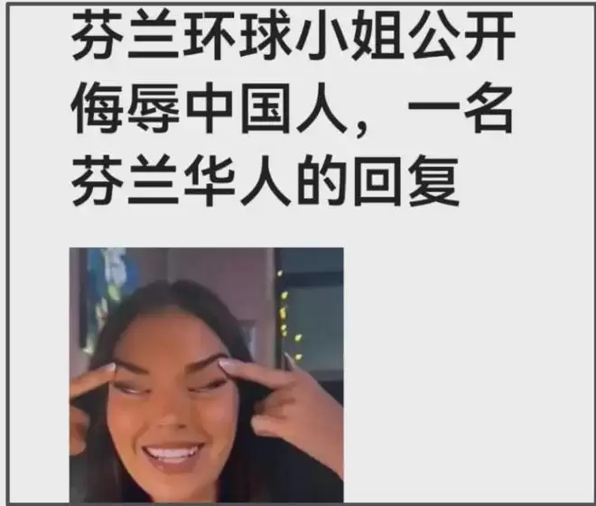 芬兰模特拉眼角歧视华人,辩称头痛后关评