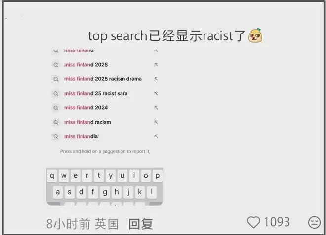 虽然风波还没有出圈,但已有不少网友参与抵制了,要求环球小姐比赛主办方除名Sarah,禁止她以芬兰小姐身份参加活动,在网友的努力之下,海外软件搜索芬兰小姐或者芬兰选美冠军等字眼,就会直接显示racist,只要点进去就能看到Sarah的恶行。