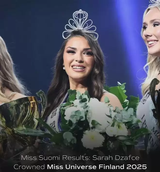 这位公然拉眼角歧视中国人的选美小姐名为Sarah Dzafce,正是2025年芬兰环球小姐选美总冠军,也就是传说中的芬兰小姐。