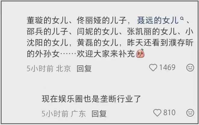 网友掐指一算,不知不觉星二代已然霸占娱乐圈,他们不光要演戏,还要出单曲、走红毯、拍杂志、开直播,连黄奕和毒贩前夫的女儿都蠢蠢欲动,要不是遭到抵制,我们已经看到毒贩女儿光鲜亮丽当爱豆上热搜了。