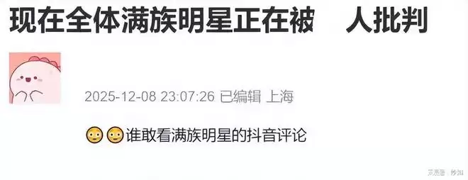 这把火烧得莫名其妙,却又来势汹汹,直接导致多位满族出身的明星社交账号评论区彻底沦陷。