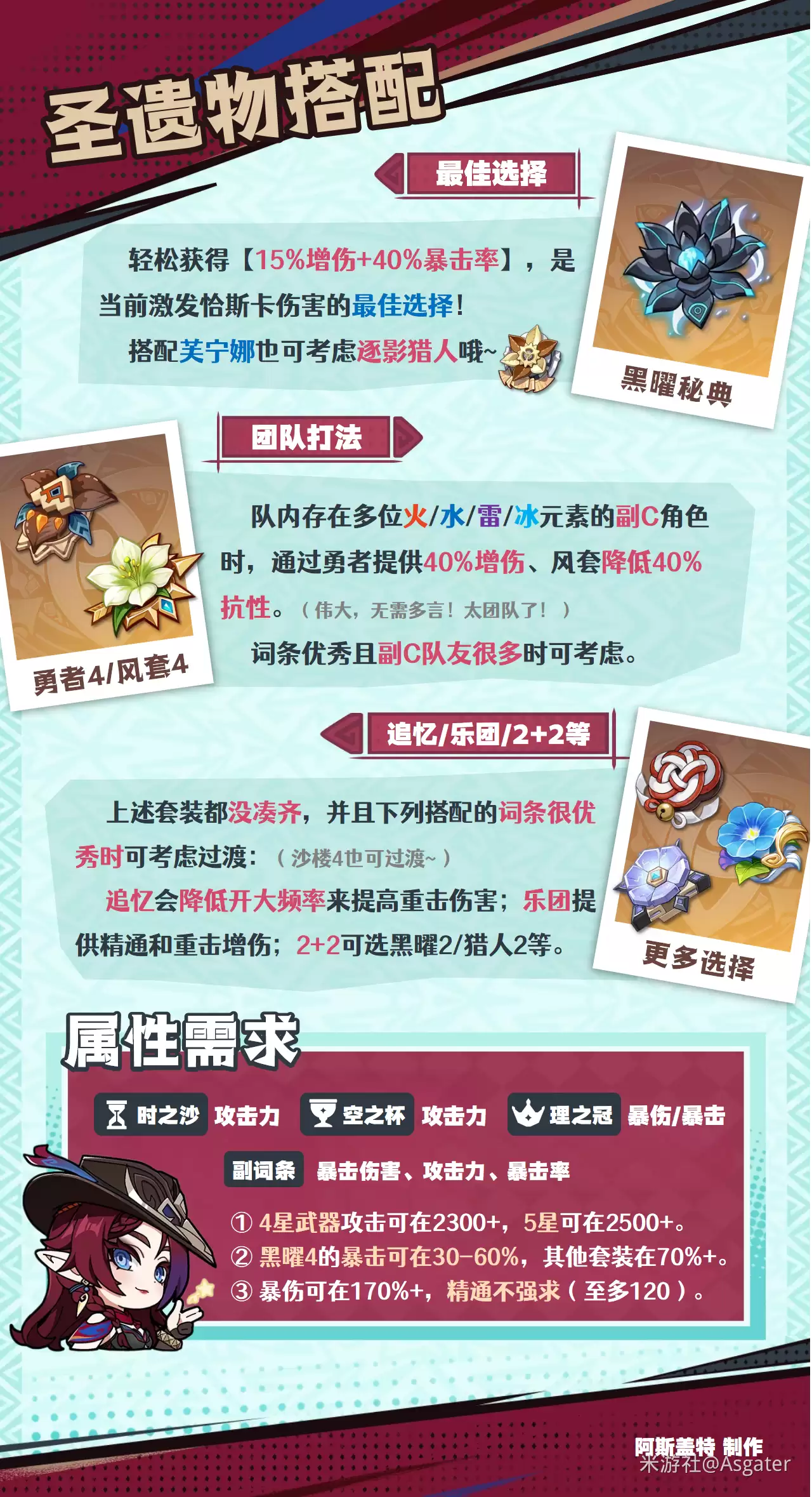 ④ 元素精通并非必须专门堆叠的属性,可以适当歪出一些,但不宜过多(建议控制在120点以下)。