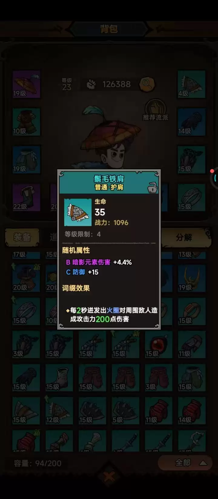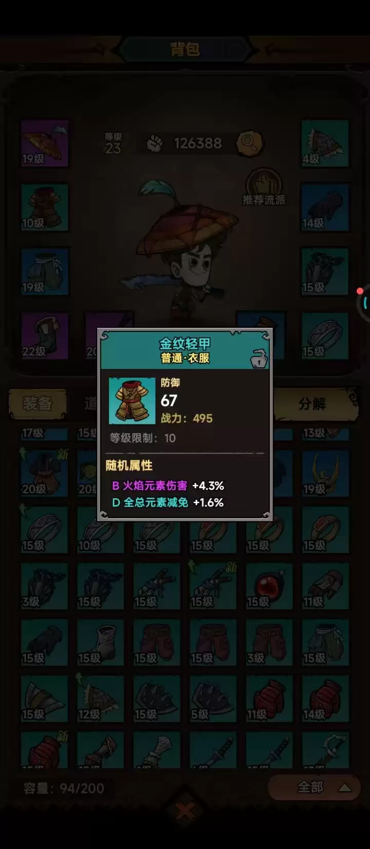 装饰品也有多个选择,但挑选核心在于攻击属性和等级。戒指优先佩戴密文戒指,它能提供40点攻击,附加5点攻击,还有神圣元素伤害,是提升输出的主要优势项。背包里的15级红纹戒指可以带着,属性相差不大,凑齐两个就能直接叠加攻击力。当然,背包里还有很多其他装备,可以直接分解掉,换取材料用于打造更有用的部件。比如那些低于15级的护肩手套,还有属性重复且偏低的戒指、裤子,只需留下一件备用,其他全部分解。也有一些等级根本不匹配的装备,可以直接换掉,比如10级的金纹轻甲,用处实在不大。