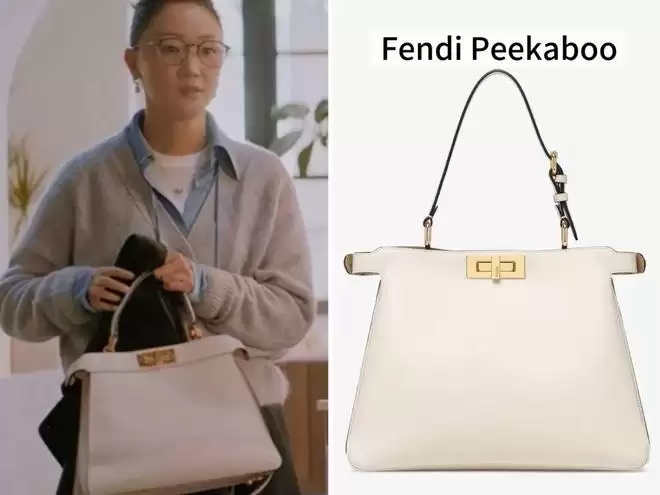 我观察了 一下,林飒背得最多的就是Fendi Peekaboo。说起来这部剧里公文包 型出现的频率真的好高啊,果然是中女最爱的包款。她有一只白色和一只蓝色,白色出镜率更高一些。