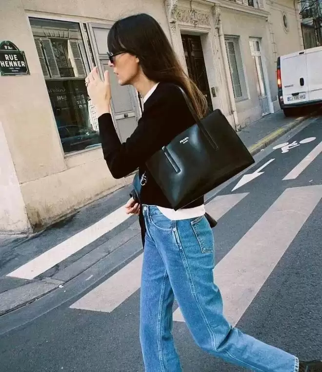 顾叶嘉背的黑色则更有静奢感一些。一套灰色纯色系穿搭,黑色包包边缘的手工白色走线为整体造型增添了细节,这种小心思很能提升衣品。参考价:4370元。