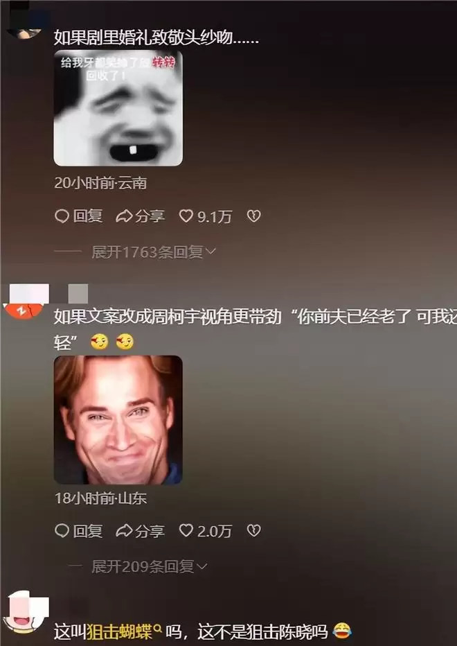 网友们更是看热闹不怕事大,还要剧组复刻头纱吻的名场面,简直都在“狙击”陈晓。