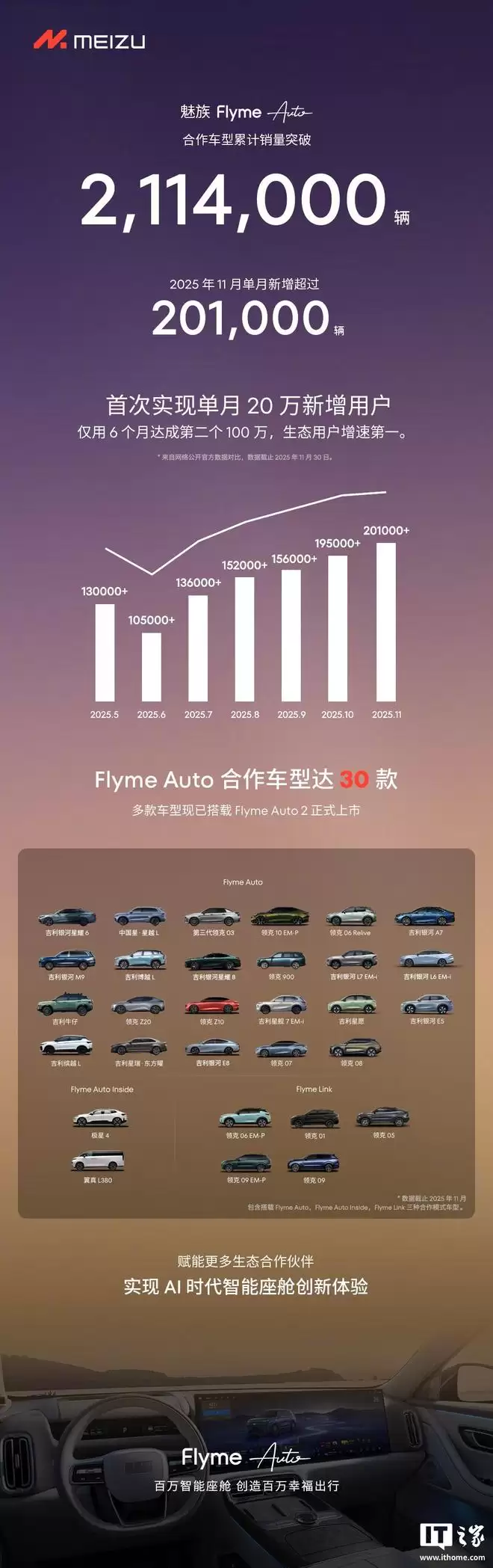 Flyme Auto生态11月用户破20万,魅族公布新增数量