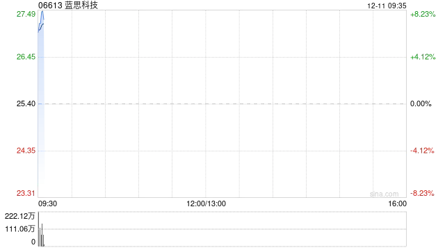 蓝思科技(06613)早盘高开逾8%,截至发稿,股价上涨7.87%,现报27.40港元,成交额达1.71亿港元。