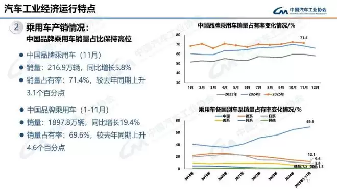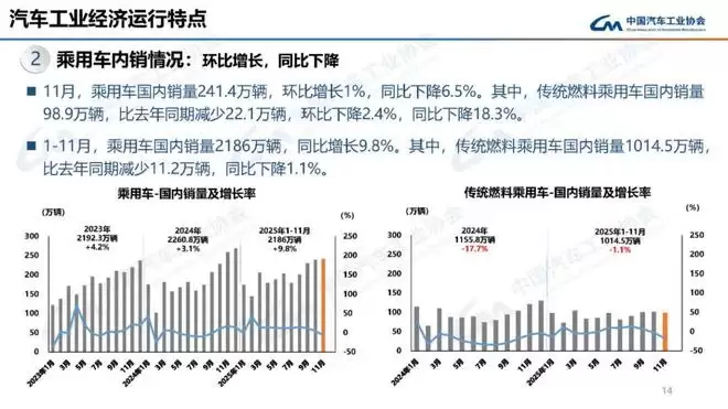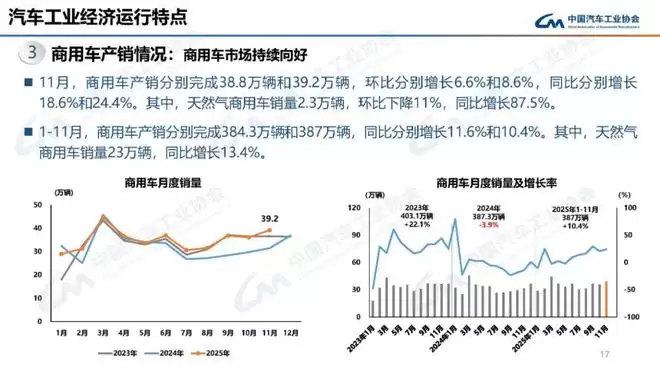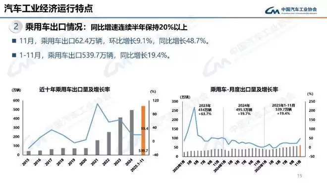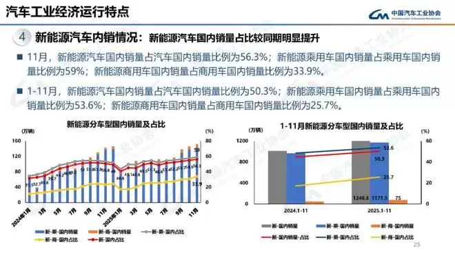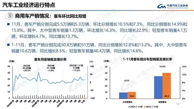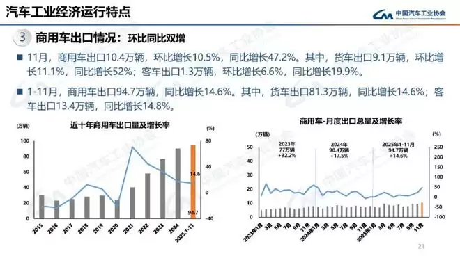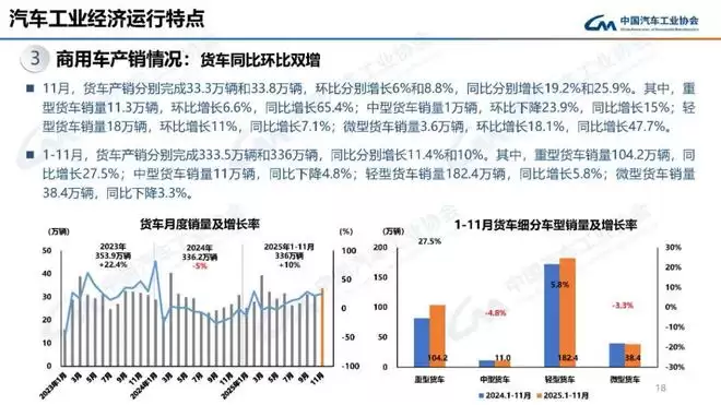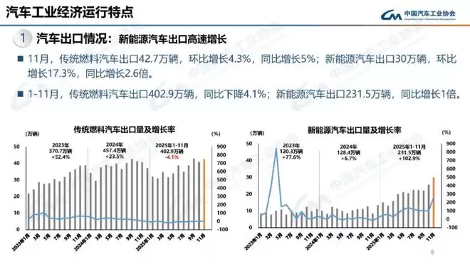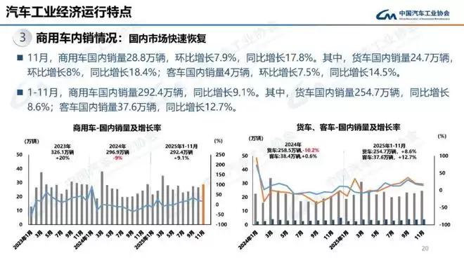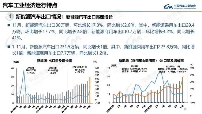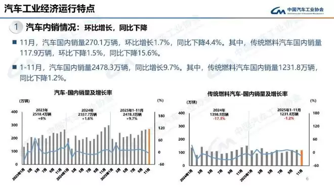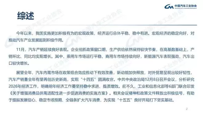 智通财经APP获悉,12月11日,中国汽车工业协会发布2025年11月汽车工业产销情况。据中国汽车工业协会分析,11月,汽车产销延续良好表现。企业抢抓政策窗口期,生产供给依然保持较快节奏,在高基数基础上,产销环比、同比均实现增长。其中,乘用车市场运行平稳,商用车市场持续向好,新能源汽车表现强劲,汽车出口较快增长。