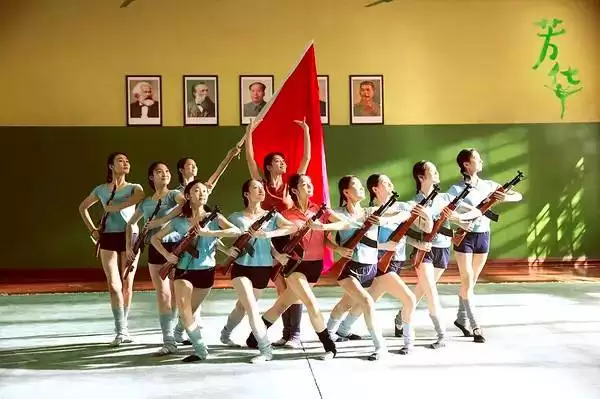 在《芳华》开始,当何小萍背负着「出身不好寄人篱下」的沉重心理包袱跨进文工团大门时,这些雄壮的标语代表着她被一个光荣而振奋的集体所接纳,她由此可以摆脱过往的压抑屈辱阴霾,而绽放出一段绚烂的青春人生。