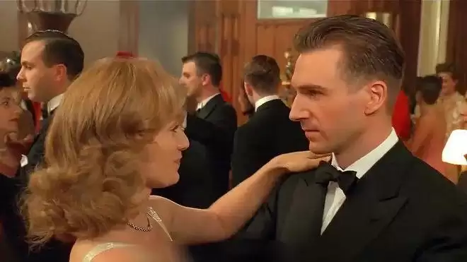 战争时期的爱情是不是特别的单纯?特别的热烈?那场戏我的心扑通扑通直跳。凯瑟琳(克莉丝汀·科特·托马斯饰)她在众目睽睽之下被窗棂格内的情人艾玛殊(拉尔夫·费因斯饰)叫住了。“你的余香还存留在我嘴里,你的味道我久久挥之不去”,“你想办法来见我,就说身体不适需要休息”…天啦,如此滚烫的情话,让女主刹那间身体瘫软下来,她佯装有些头晕,走进楼道里,他在等她,他从墙角伸出手一把拽住她,他们正在热恋,从昨晚开始他们有了肌肤之亲。