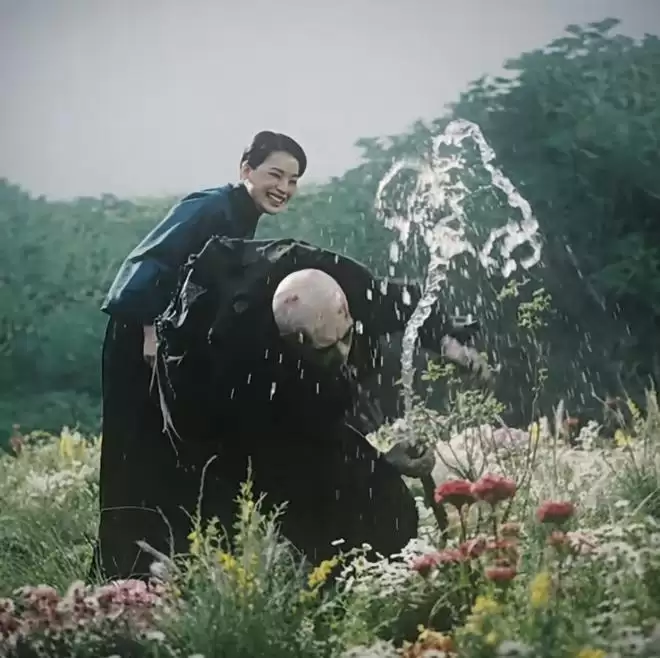 毕赣:像舒淇那场,罂粟花之梦,转盘那场戏,表演其实没法指导,完全靠她的才华和天赋。所以她来了以后,我就先把底层逻辑告诉她,为什么要设计这场戏以及这场戏实际上是一场梦境逐渐被解构,直到空落落的一块一块地拿掉,所以首先她知道了我是有目的地在处理这件事情,不是图好看。然后我就告诉她整个表演:我希望像是舞蹈,你就进去一直在转圈跳舞。好像就说了这么两点,开拍的时候她就是如你现在看到的基本上没有什么差距了,然后即使拍了十来条甚至二十几条,其实都在调里面很小的具体的细节,哪个点她需要怎么样之类的。所以和她的沟通我其实很轻松。小姑爹和我合作十年了,但实际上这次拍摄小姑爹比其他的演员要更焦虑,为什么?因为他的阈值被拔得很高了,就是表演这场戏,他知道我不会善罢甘休,他知道一定是折磨到死,所以他的阈值非常高,他对自己整场戏表演的压力会很强。