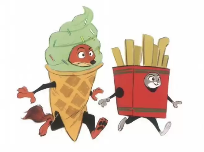 而最令人心动的“吃货系列”更是萌翻了观众:朱迪打扮成一盒美味的薯条,尼克则带着冰淇淋装饰走在旁边,简直是“可爱到心脏爆表”!