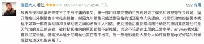 △ 不喜欢的观众认为《疯狂动物城2》不值得苦苦等待九年