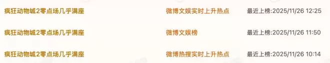 △ 《疯狂动物城2》零点场几乎满座情况登上热搜
