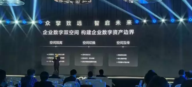 鸿蒙电脑企业版Beta还提供了企业数字安全空间,一台电脑可以被隔离成两个或多个空间,个人空间和办公空间之间可以相互切换并且在监管下互相换文件。