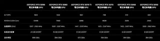 具体型号方面,从入门到旗舰,RTX 5050为入门级游戏本独显,但这款独显推出时间晚,产品关注度也不高;RTX 5060是甜品级独显,主打2.5K高画质3A游戏;RTX 5070为中高端独显,基本胜任2.5K最高画质3A游戏;RTX 5070 Ti为高端独显,2.5K最高画质运行3A游戏毫无压力;RTX 5080则是次旗舰独显,主打2.5K分辨率下的最高画质高帧率3A游戏;至于RTX 5090,则是旗舰独显,已经可以胜任在4K分辨率下高画质流畅运行3A大作。