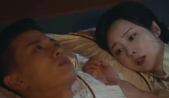 当何贤没有回音时,郭绮文翻身来劝的画面,李纯的脸好吓人。