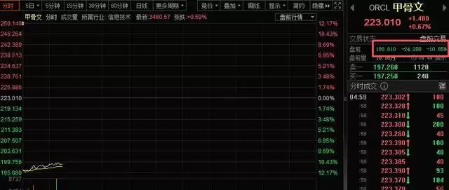 行情显示,美股甲骨文盘前交易跌幅一度超12%,最新跌幅有所收窄,截至发稿,跌幅仍超10%。