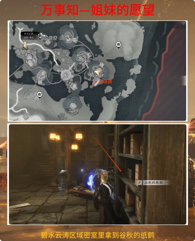 随后,前往碧水云涛区域的密室内,取得谷秋的纸鹤。