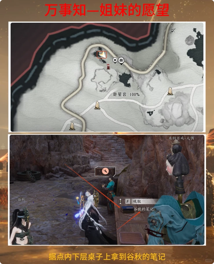 接着,在据点内的下层桌子上找到谷秋的笔记。
