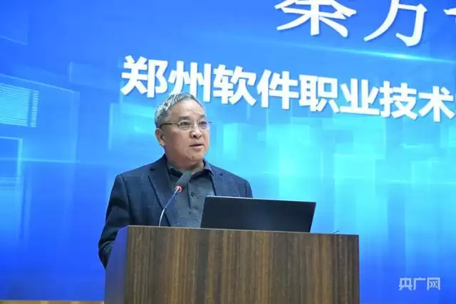 郑州软件职业技术学院校长秦方奇致辞(央广网记者 夏莎 摄)