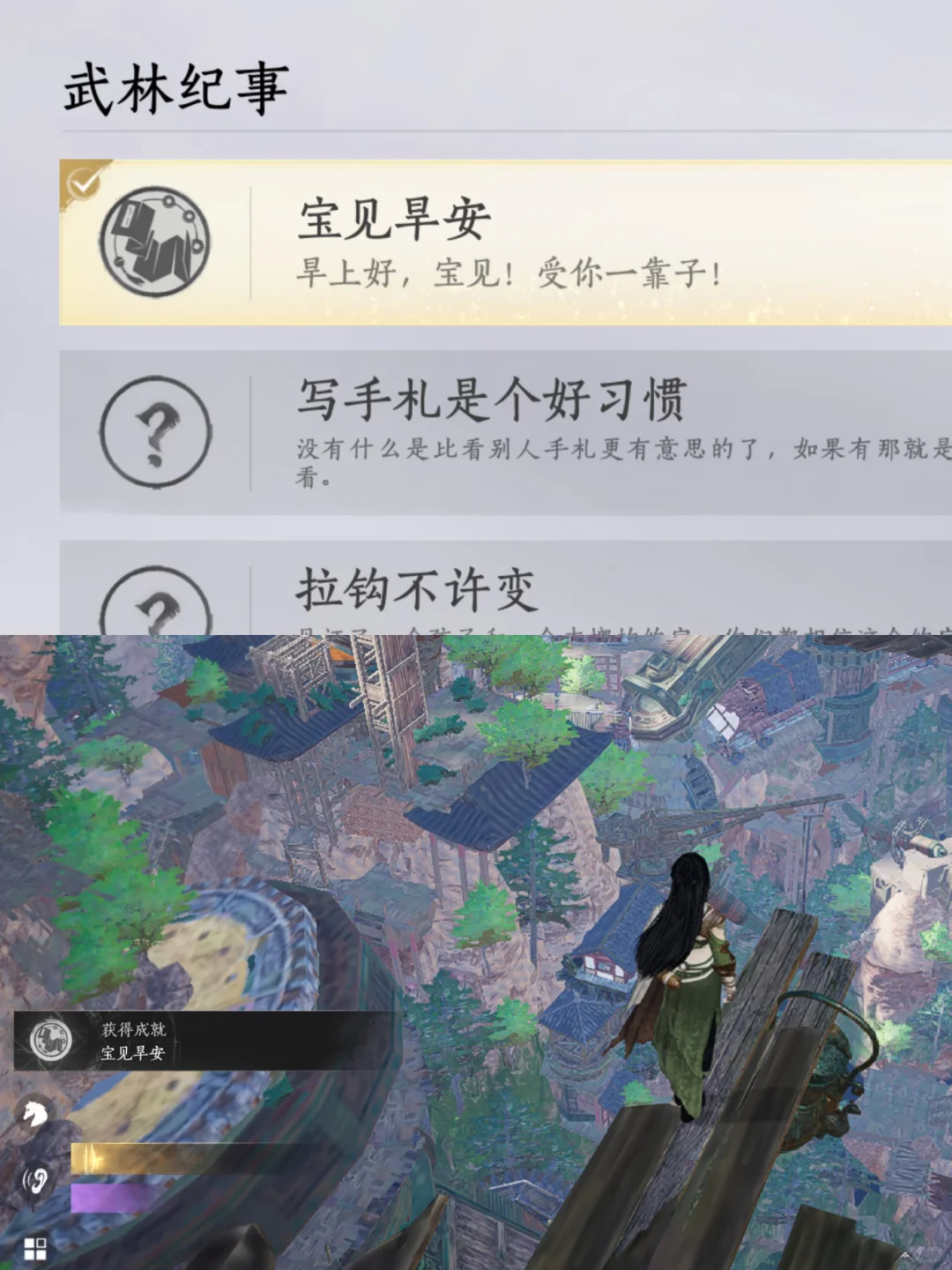 首先,你需要完成两次剧情中的“悬梁上吊”任务。之后,前往飞天城废墟,向右下方行走。沿着道路一直走到尽头,就会发现一个标记着宝箱位置的区域。开启宝箱后,即可顺利解锁“宝剑见安”成就。