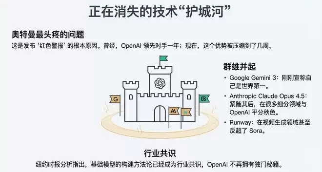 曾经,OpenAI领先对手一年甚至两年;现在,这个领先优势被压缩到了几周甚至几天。纽约时报的分析指出,基础模型的构建方法论已经成为行业共识,OpenAI不再拥有独门秘籍。