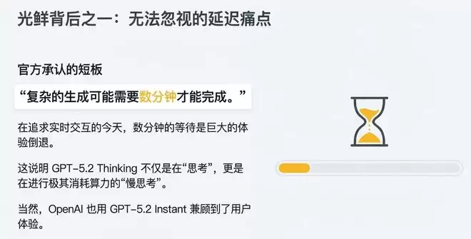 在追求实时交互的今天,数分钟的等待是巨大的体验倒退。这说明GPT-5.2 Thinking不仅是在“思考”,更是在进行极其消耗算力的“慢思考”。
