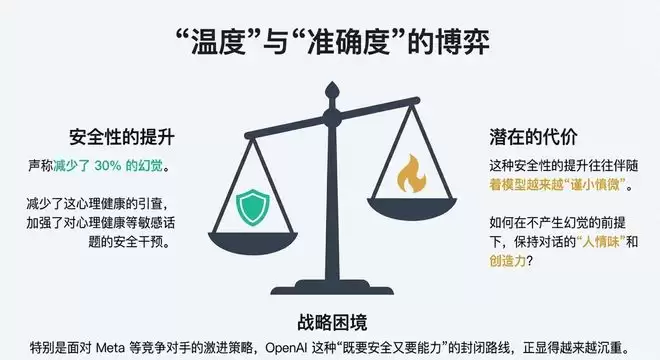 然而,这种安全性的提升往往伴随着模型越来越“谨小慎微”。如何在不产生幻觉的前提下,保持对话的“人情味”和创造力,依然是GPT-5.2面临的巨大挑战。