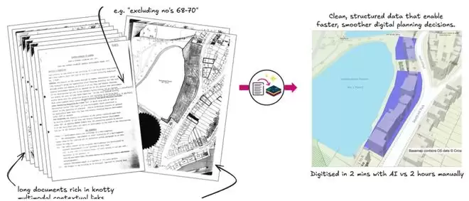 每年,地方议会需要处理约35万份规划申请,而大量的历史规划档案仍以纸质、扫描PDF或手绘地图的形式存在。