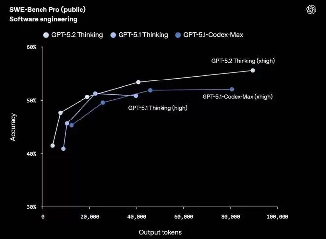 GPT-5.2 Thinking 在 SWE-Bench Pro 上取得 55.6% 的最新 SOTA 成绩。