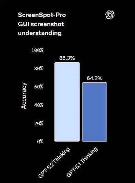 OpenAI 表示:「GPT-5.2 Thinking 是我们要目前最强的视觉模型,在图表推理和软件界面理解方面的错误率几乎降低了一半。」